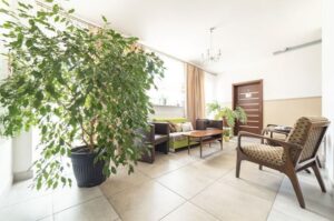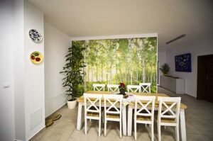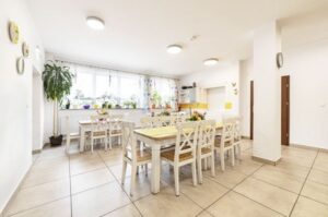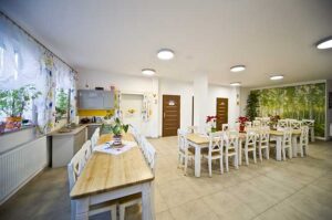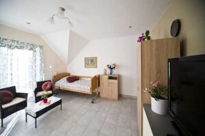 Nasz dom zlokalizowany jest w otulinie Żywieckiego Parku Krajobrazowego. Otoczeni jesteśmy górami, co piękne widać z naszego tarasu, balkonów i okien. Nasi podopieczni mają do dyspozycji przestronny pokój z łazienką, dostęp do wszystkich powierzchni wspólnych (salta tv, biblioteka, jadalnia, kaplica, sala rehabilitacji, sala terapii).